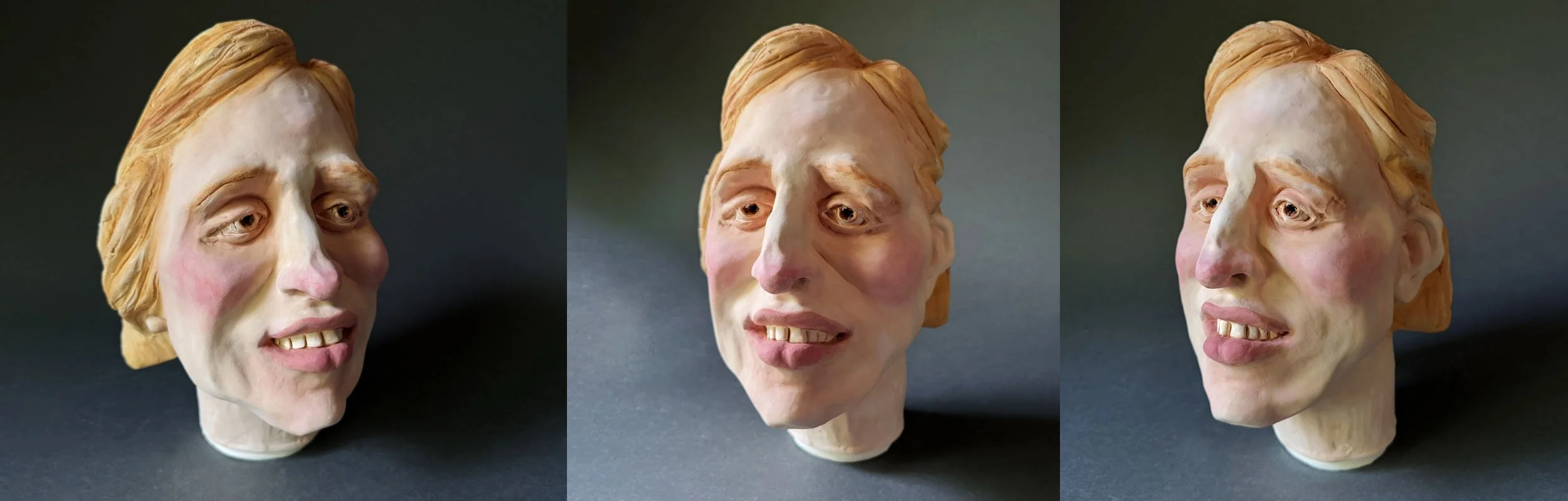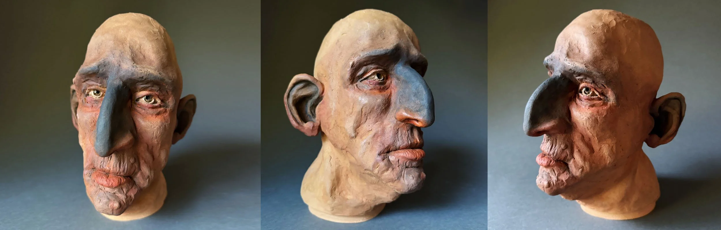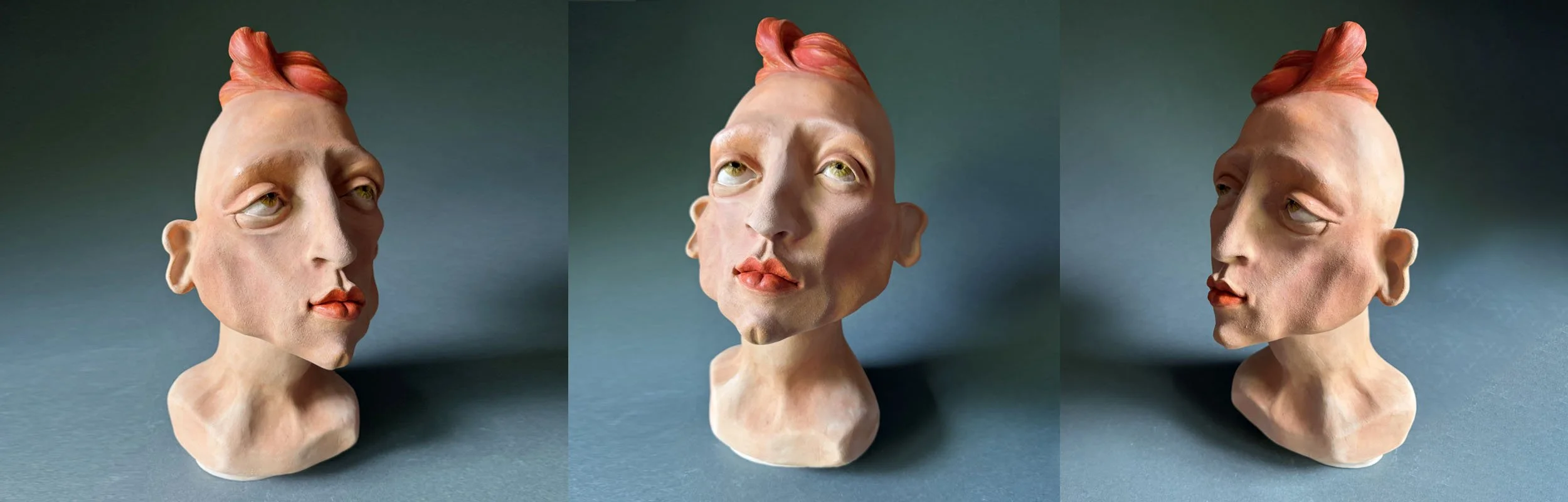CHESTER: Leland Oral Historian | $750 | 2025 | Fired Clay, Mixed Media Finishing | 9”W x 11.7”H x 7..75”D