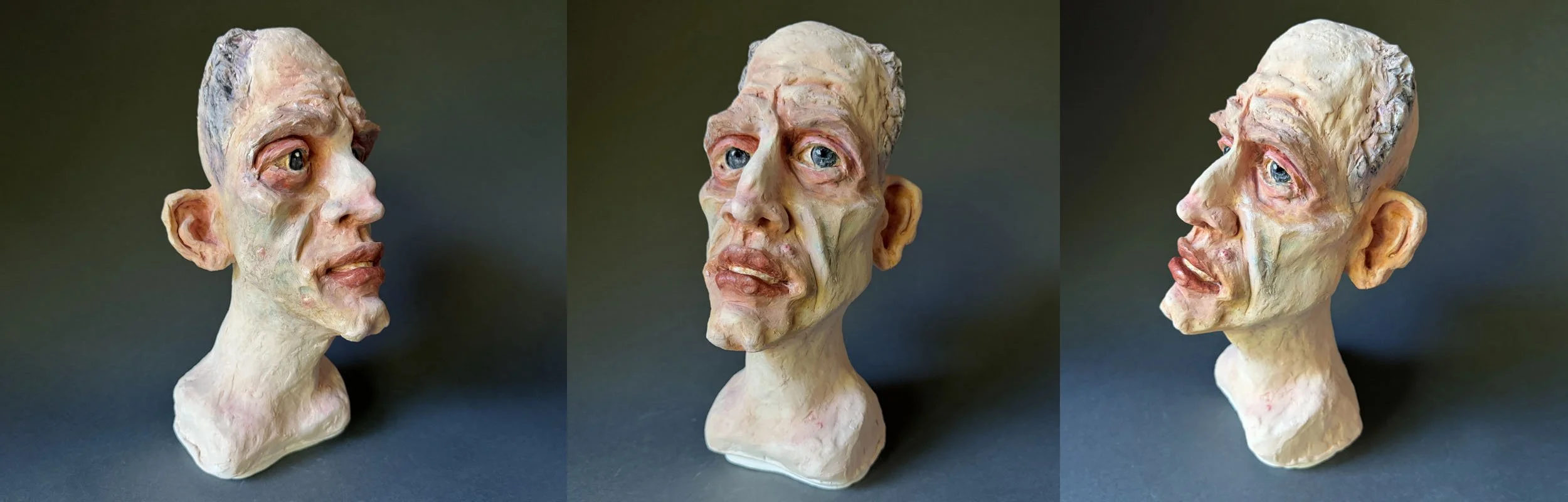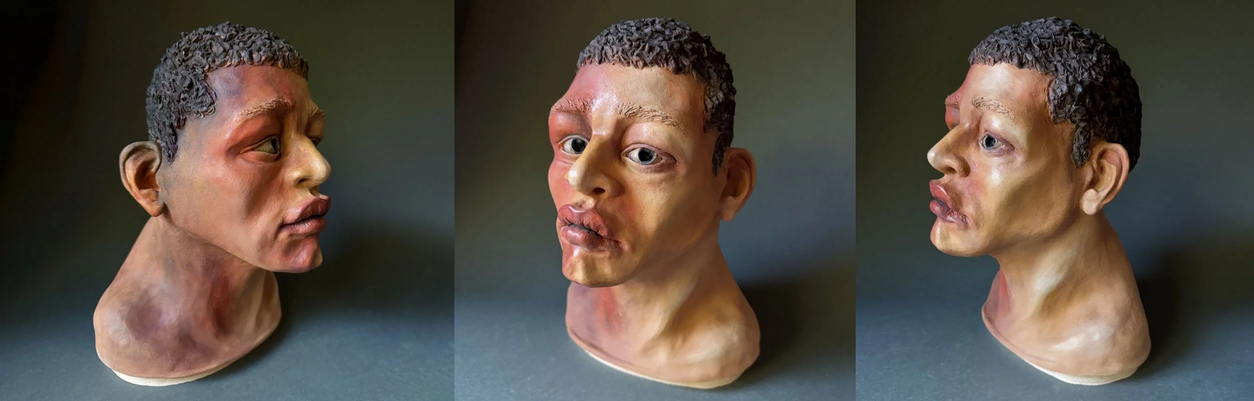 EARNEST: Grand Rapids Assisted Living Orderly | $450 | 2025 | Fired Clay, Mixed Media Finishing | 7”W x 13”H x 5.5”D