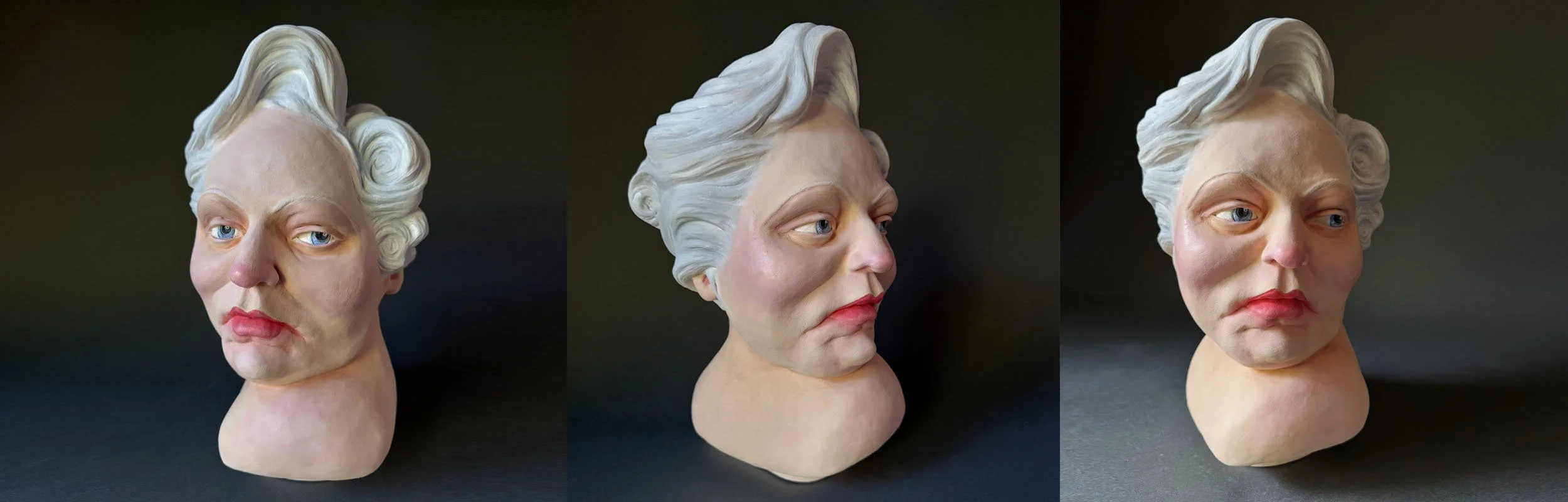 MARGUERITE: Grosse Pointe Socialite | $1,400 | 2025 | Fired Clay, Mixed Media Finishing | 9”W x 16”H x 9”D