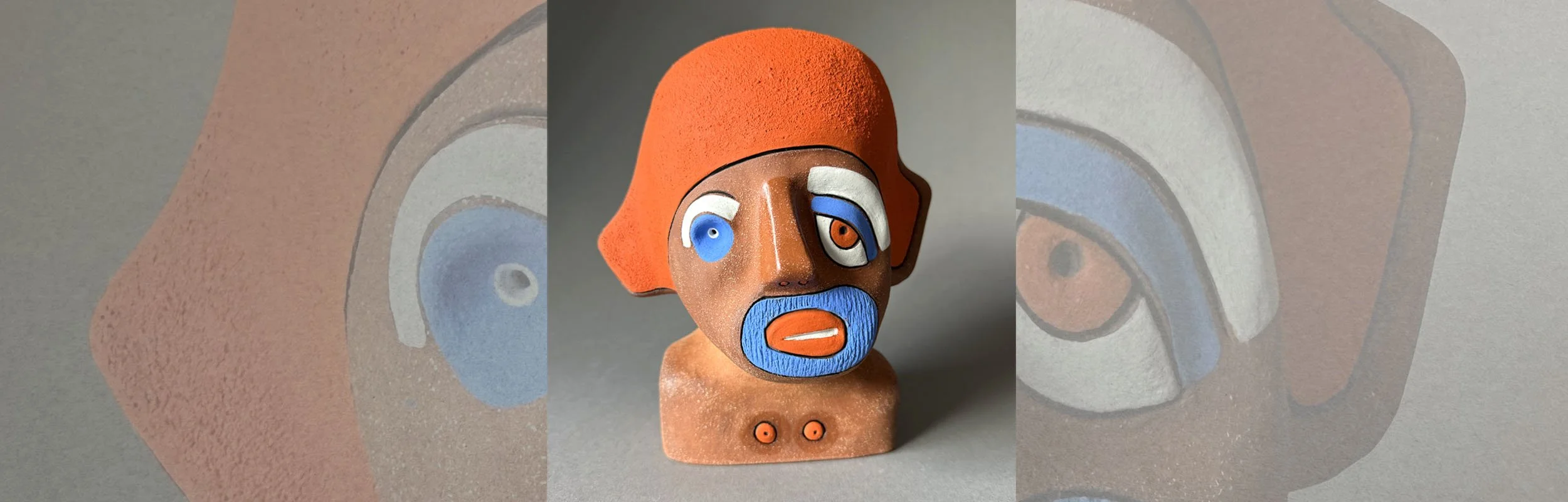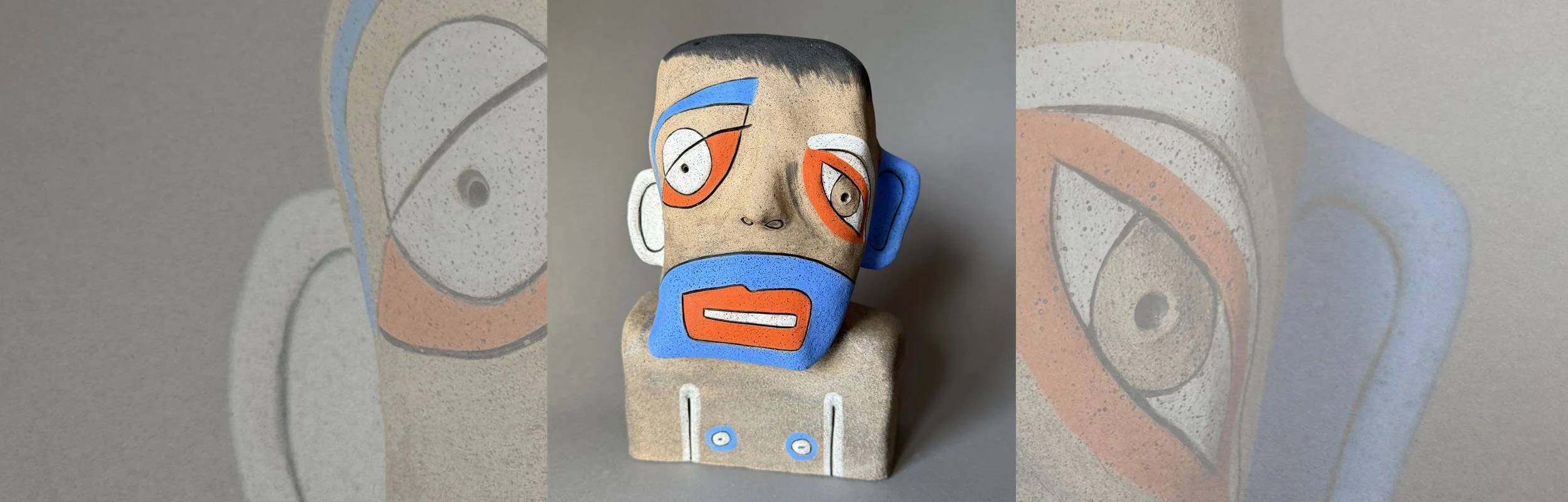 BRIAN | $445 | 2026 | Fired Clay, Mixed Media | 6.15H” x 8W” x 6.75”D