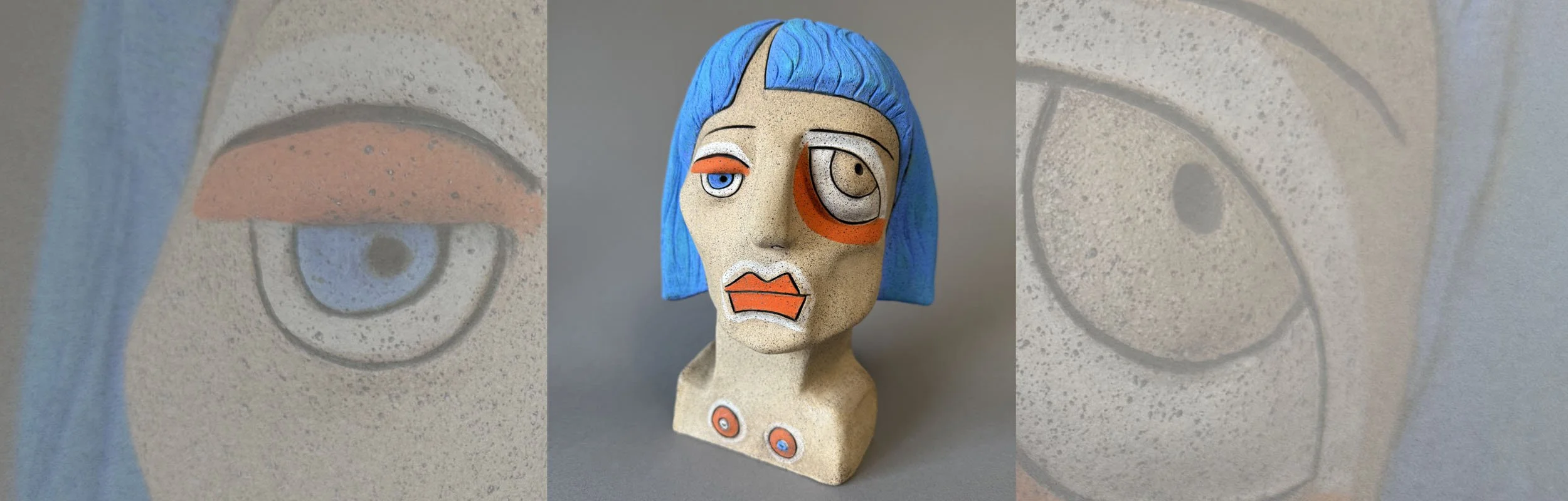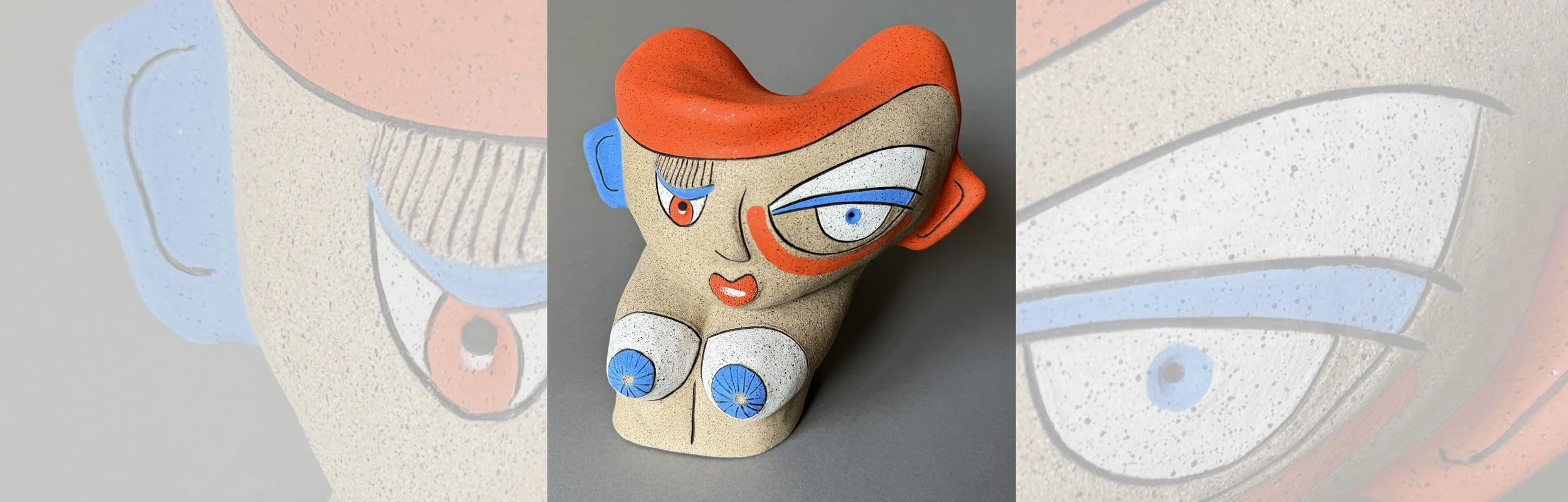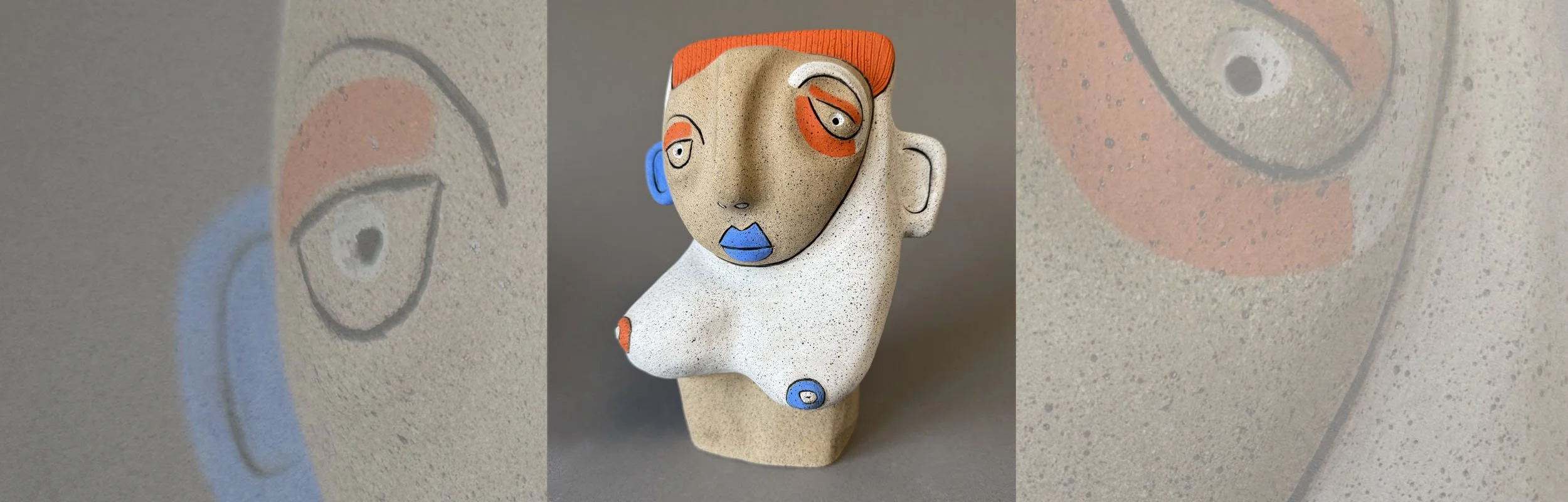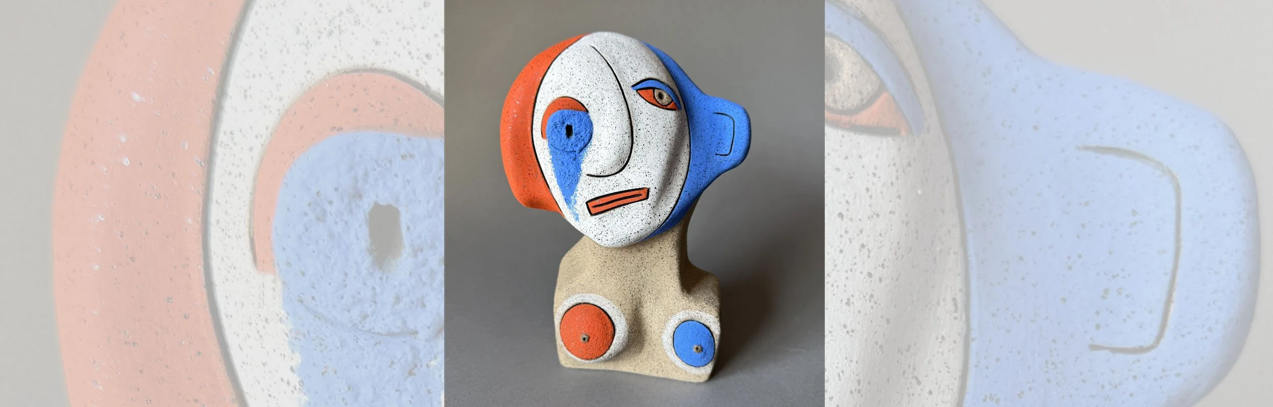 STEPHANIE | $575 | 2025 | Fired Clay, Mixed Media | 11.75H” x 8.5W” x 6.5”D