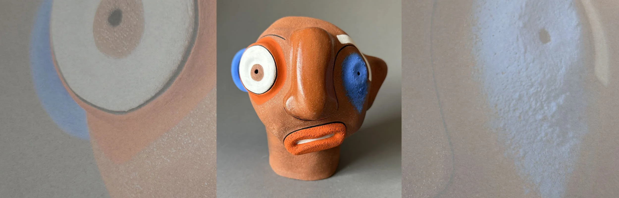 LEWIS | $525 | 2026 | Fired Clay, Mixed Media | 8.5H” x 7W” x 5.125”D